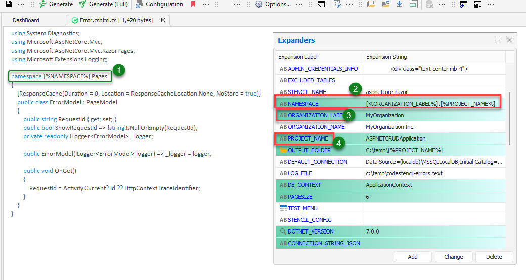 (a) We want to Expand a label called "NameSpace". This will expand into "ZeraSystems.CodeStencil".