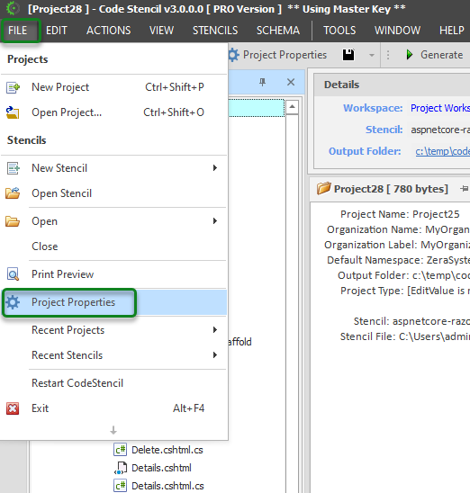 Project Properties You can make changes to the properties of a project by double-clicking on the root node of the project: Or from the context menu: Or from the File menu: