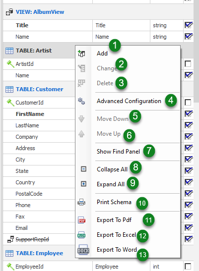 - [Add] Column - This allows you to add a property to the table you clicked on.
