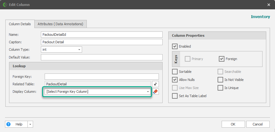 During a database import, CodeStencil tries to choose the best columns to display for Foreign Keys automatically. Sometimes, it can't pick the right column, so you may need to select the display column for your foreign key manually. You can do this opening the column edit form in any of these ways: