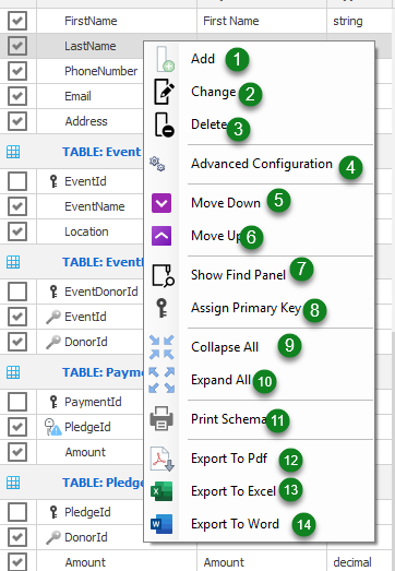 - Export To Excel - This will export the tables in the Schema Dictionary to an Excel Spreadsheet.