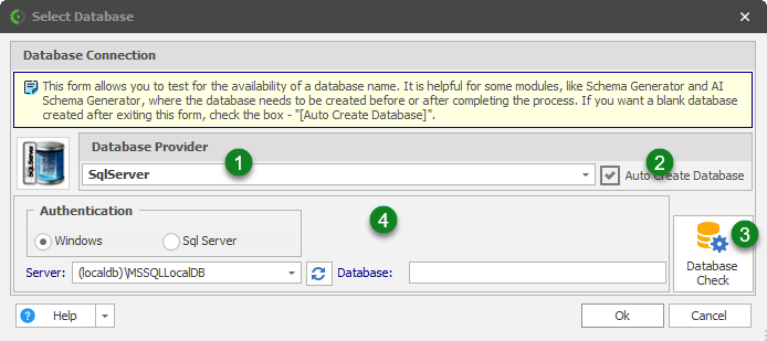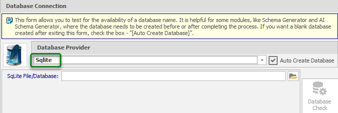 - Auto Create Database - When this is checked, a blank database will be created once you successfully exit the form.