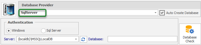 - Database Provider - Here you select the type of database; Sql Server, MySQL, SQLite, Oracle.