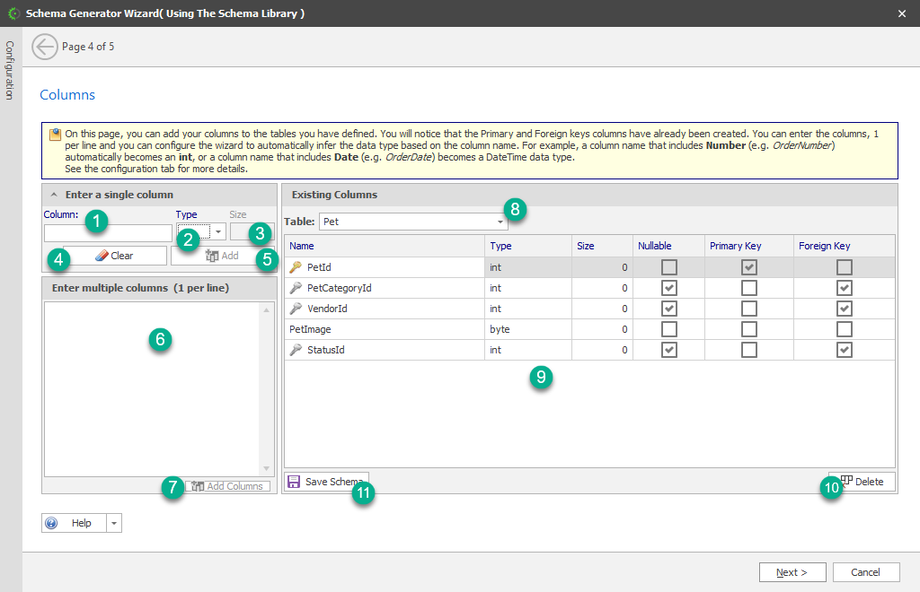 - Multiple Columns - You can specify multiple columns for faster column generation here. You specify one column per line. See Data Type Expansion on how to speed up column creation.