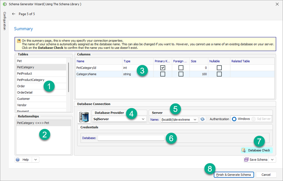 - Database - Depending on the database provider (see 4 above), this is the name of the database that is to be created. If the database provider is SQLite, then that would be the filename.