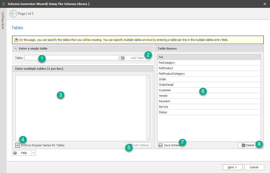 - Multiple Tables - You can enter multiple tables at once using this field. You need to enter the table one per line.
