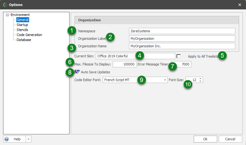 - Namespace - This is the string that will be used as the Namespace while generating code like C# classes that requires namespaces.